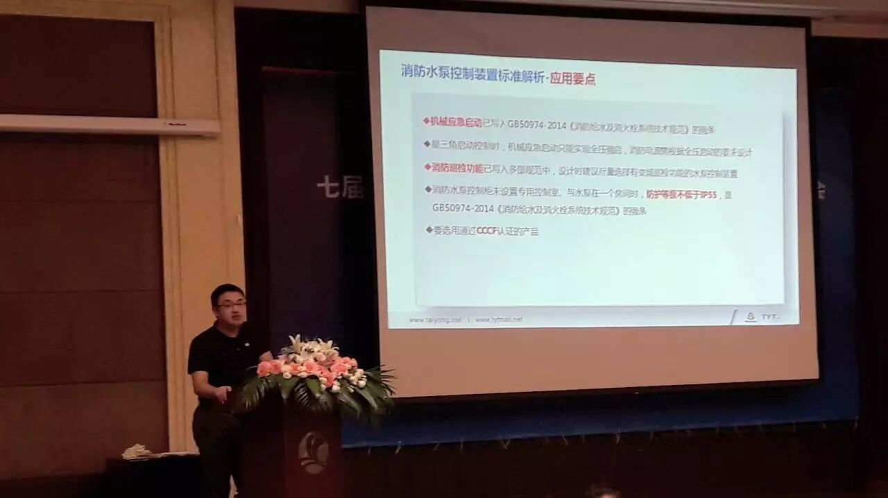 泰永长征作为企业代表再次应邀参加此次会议,会议中泰永长征向业界展示了极速转换 、安全稳定的TBBQ3系列专用PC级自动转换开关以及TBEL系列充电桩等产品,陆续有很多设计师纷纷驻足上前了解、交流,并获得了现场专家和与会人员的肯定,泰永长征研发总监吴总做了《消防水泵控制装置的标准及应用》报告。